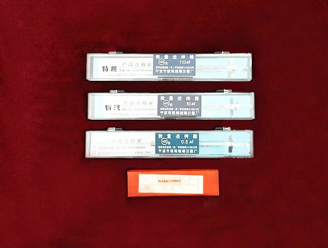 微量进样器:分0.5微升、1微升、50微升、100微升、250微升、1000微升,用于测定液体样品中的水分