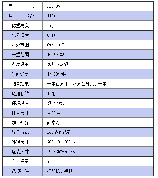 该水分仪广泛使用于需要快速测定水分的行业,如粮食、饲料、种子,脱水蔬菜、烟草,化工,茶叶,食品、肉类、农林、造纸、橡胶、塑胶、纺织等行业中原材料、中间体、成品样品中水分含量的测试及数据打印。